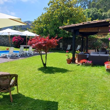 Con capacidad para 9 personas, la casa es ideal para familias que buscan desconectar en un entorno tranquilo. Dispone de una amplia piscina privada, perfecta para refrescarse en los días de verano, y una barbacoa fija donde compartir comidas al aire libre. Su entorno, rodeado de un sólido muro de piedra, garantiza privacidad y seguridad, creando un espacio donde el tiempo parece detenerse.